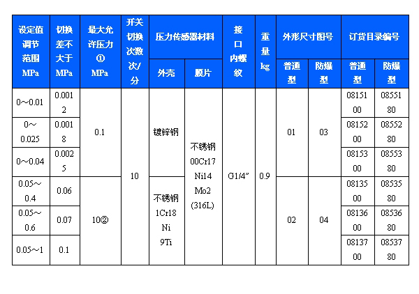 501/7D壓力開關(guān)采用膜片式的傳感器,部分規(guī)格傳感器外殼材料是不銹鋼,可用于腐蝕性介質(zhì),也可用于空氣、氣體、水蒸汽等中性氣體和油等液體介質(zhì)。501/7D壓力開關(guān)的設(shè)定值可調(diào),調(diào)節(jié)范圍0~1MPa。