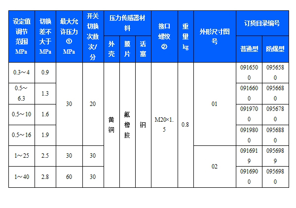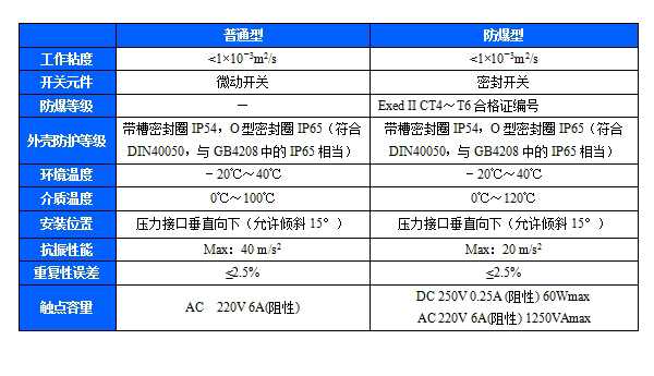 規(guī)格:切換差不可調(小切換差)