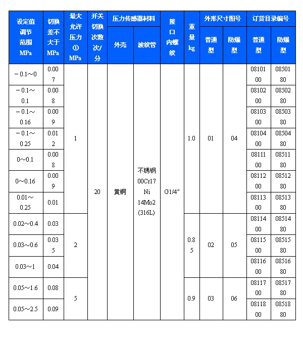 規(guī)格:TLD-02壓力控制器切換差不可調(diào)